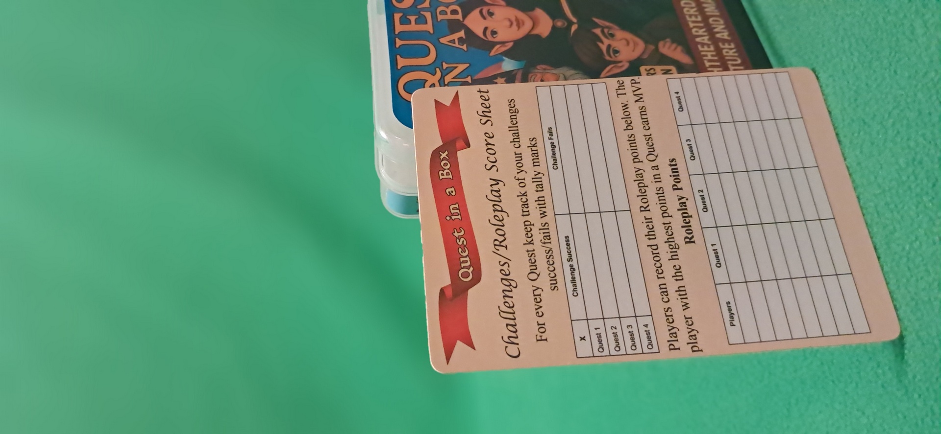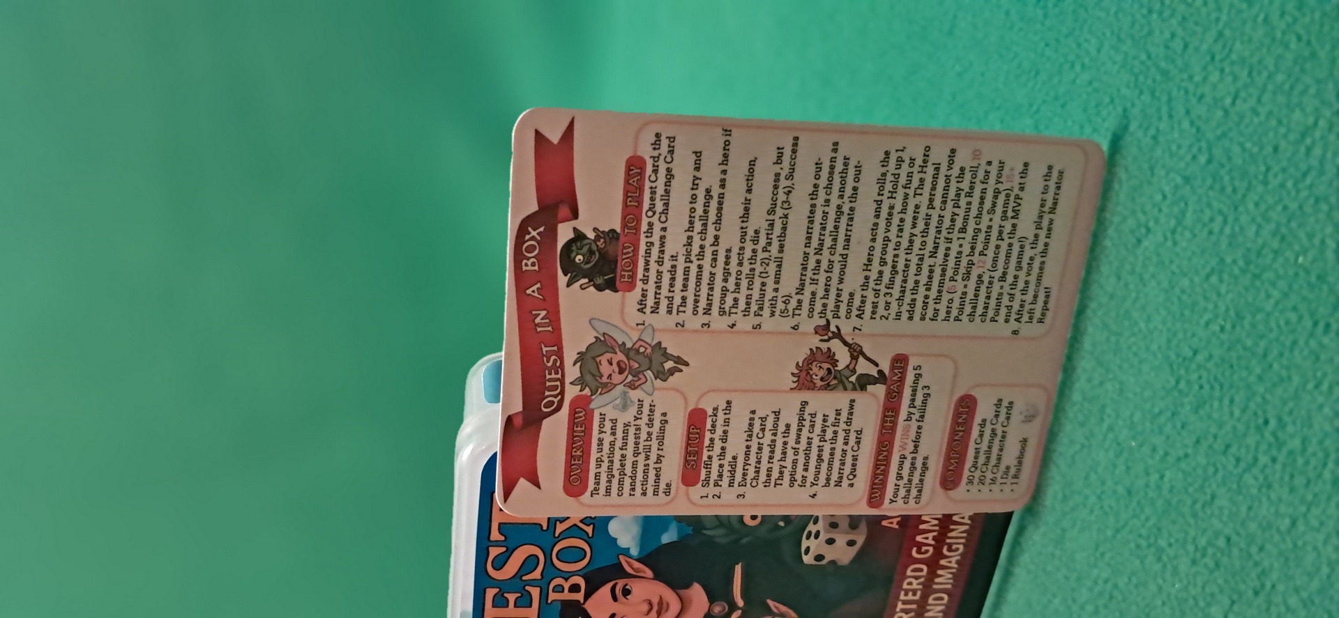 Quest in a Box is a fun, silly storytelling game where players become quirky characters, team up, and tackle wild challenges using creativity, special talents, and a lucky roll of the die!